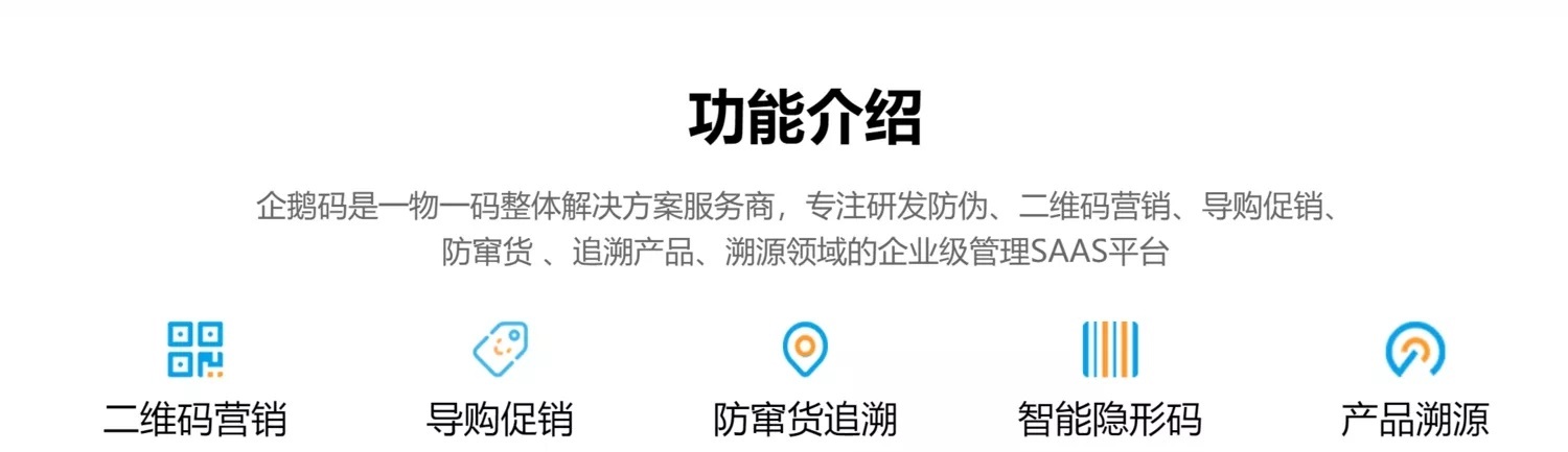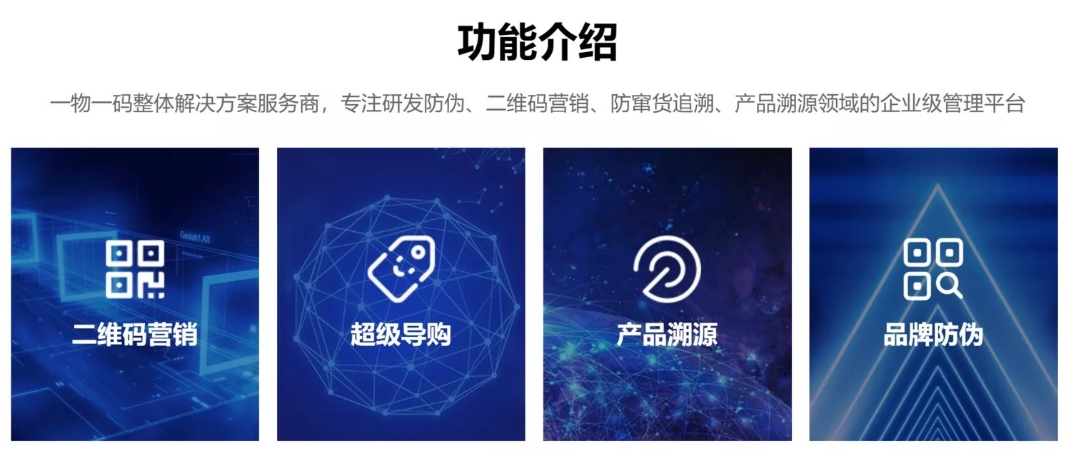珠海重明鸟网络科技有限公司 主要从事一物一码集成服务,致力于通过为每一件商品赋予唯一标识,将一物一码技术和企业实际场景结合,不断创新,为企业提供包括产 品促销、产品防伪、产品防窜、产品溯源、移动商城、渠道订货、售后质保等众多场景在内的整体解决方案。 公司团队拥有15年一物一码开发经验、8年SaaS平台成功运营经验、集成产线改造实施经验,为多行业深度定制整体解决方案。 服务行业包括:快消食品、酒水饮料、农产品、家电行业、母婴用品、美妆行业、建材行业、汽配行业、农牧行业、日用品行业等。